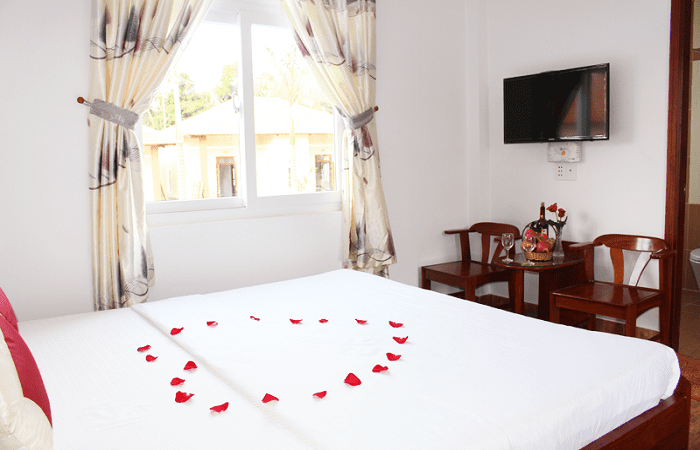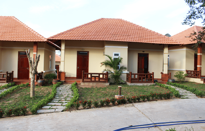 Resort được thiết kế khéo léo tạo nên không gian tự nhiên, gần gũi với thiên nhiên. Nơi đây thích hợp cho các kỳ nghỉ thư giãn bởi không gian yên tĩnh, tuyệt đẹp hòa với hương thơm cỏ cây. Các phòng Bungalow được thiết kế sử dụng chất liệu tự nhiên và các chất liệu truyền thống dùng gạch, gỗ, mái ngói. Resort có 34 căn gồm loại 3 loại bungalow (dành cho 2 khách, 3 khách và gia đình ) với trang thiết bị đầy đủ tiện nghi tất cả phòng của resort được trang bị máy lạnh và bao quanh bởi khu vườn nhỏ xinh xắn sẽ mang đến cho quý khách cảm giác thoải mái khi nghỉ dưỡng tại đây.