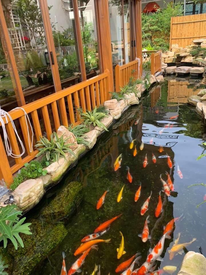 - Khu vui chơi thư giãn có cầu trươt, bể cá Koi