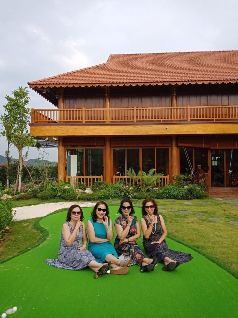 - Nhà sàn có bãi cỏ rộng thích hợp tổ chức trò chơi team building và ngắm hồ