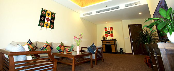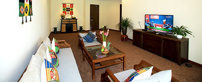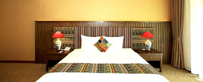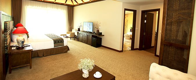Được xây dựng từ cảm hứng hòa mình vào thiên nhiên, Executive Suite là hạng phòng riêng biệt với 1 phòng khách, 1 phòng ngủ và nhà tắm đầy đủ tiện nghi. Đặc biệt, với thiết kế phòng khách riêng biệt, quý khách sẽ có nhiều không gian sinh hoạt chung, tạo sự gắn kết cho cả gia đình. Phỏng ngủ bên trong rộng rãi với những khung cửa sổ lớn giúp du khách dễ dàng ngắm nhìn cảnh sắc thiên nhiên bên ngoài. Toàn bộ gian phòng được trang trí giản dị bằng các chất liệu quen thuộc và gần gũi với thiên nhiên và văn hóa Tây Bắc như bàn gỗ, rèm thổ cẩm, hoa ban rừng,…