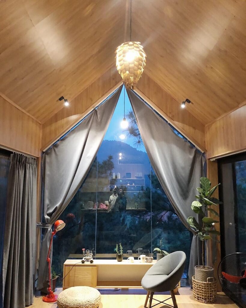 - Quả thông lớn là căn nhà cao cấp nhất của Olesa Retreat nằm trên triền đồi cao, sở hữu khoảng view 360 độ khi 3 mặt nhà đều là tường kính cường lực trong suốt.