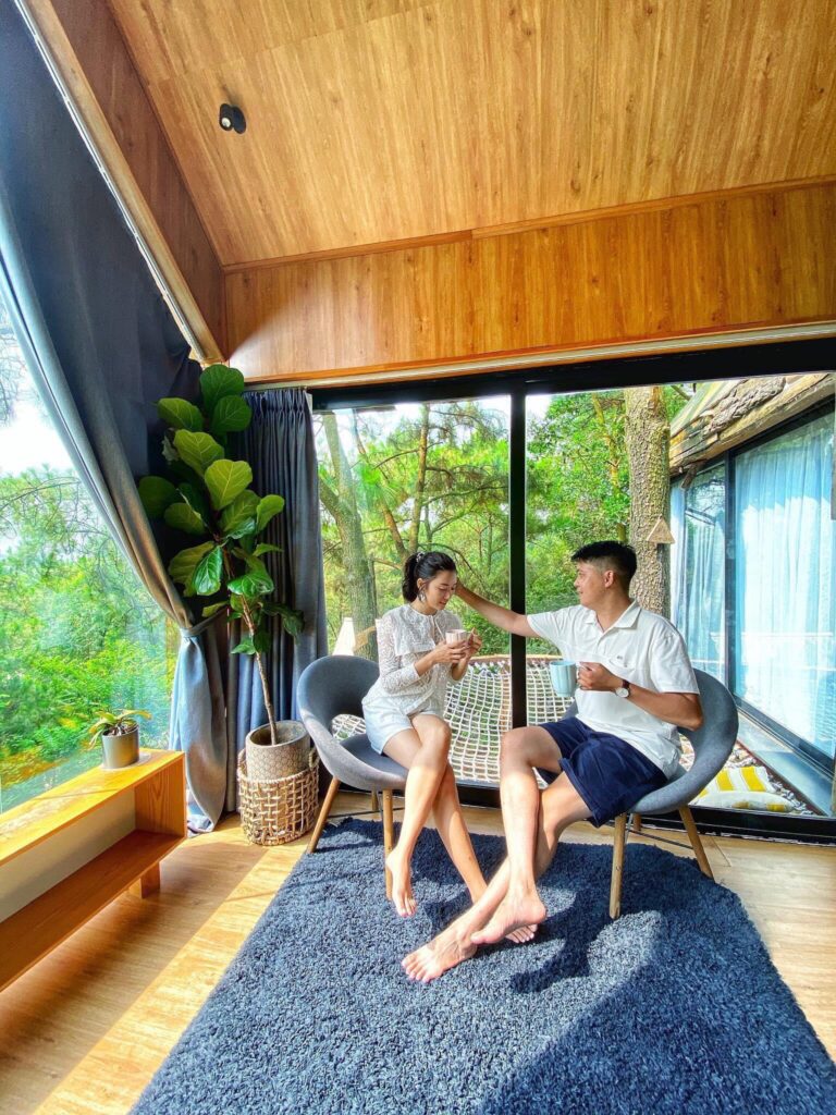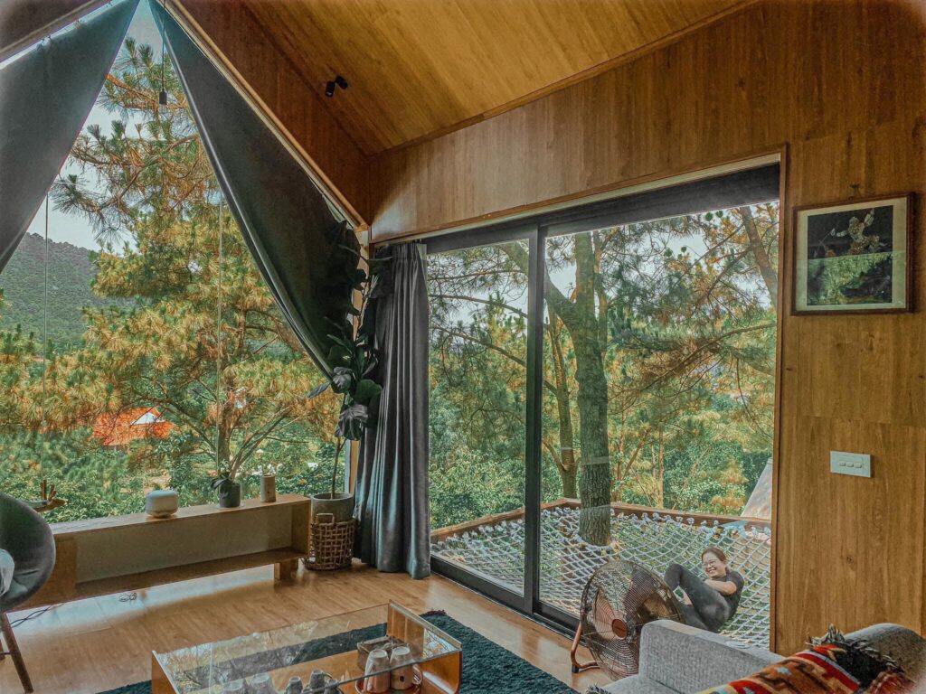 - Sân riêng: bể ngâm người trên cao, võng bằng lưới lớn nằm đọc sách và ngắm cảnh rừng thông.