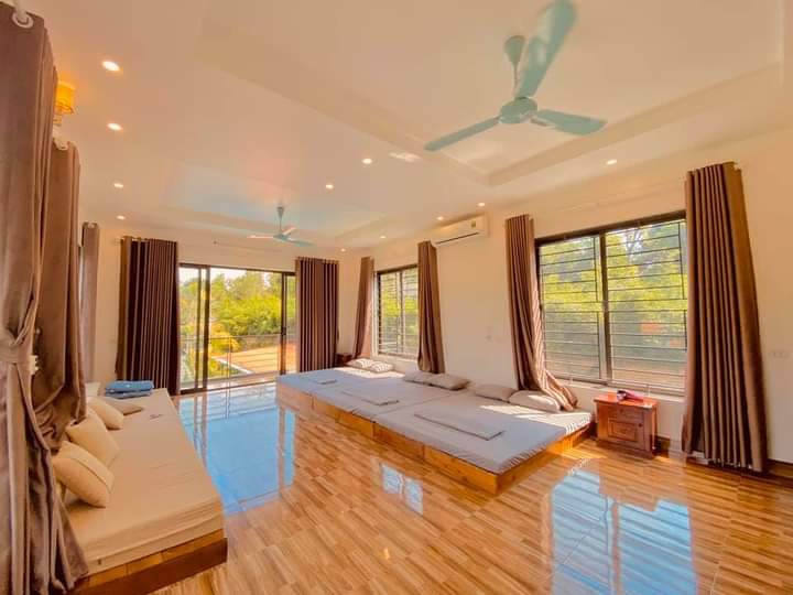 - 4 Phòng ngủ đơn, 1 phòng ngủ tập thể (3 giường), 1 phòng khách rộng, , đệm rời phục vụ đủ số người lưu trú