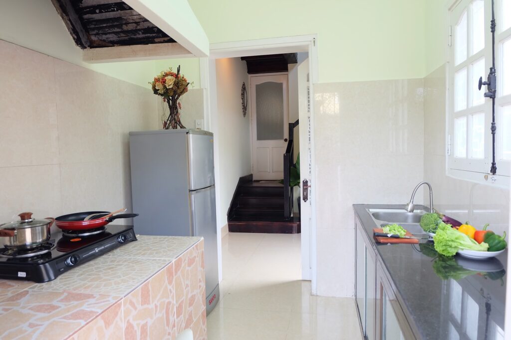 – Thiết kế: Nhà thiết xinh xắn bao gồm 3 phòng ngủ trong đó ( 02p 1 giường + 01p 3 nệm), 3 toilet ( 2 toilet trong nhà + 1 toilet ngoài sân), Phòng khách có bếp nấu ăn đầy đủ dụng cụ.
