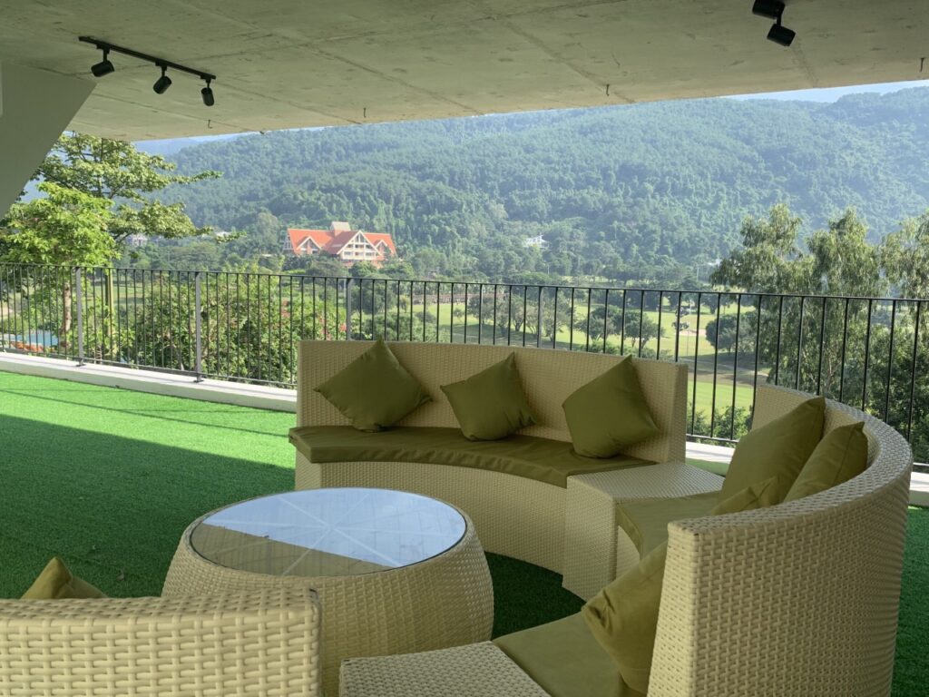 Thiết kế ngay sát sân golf Tam Đảo, tựa lưng vào núi vô cùng thơ mộng. Villa Tam Đảo 6 phòng ngủ tiêu chuẩn dành cho 16 người lớn hội tụ đủ những ưu thế vượt trội, đẳng cấp, gồm: