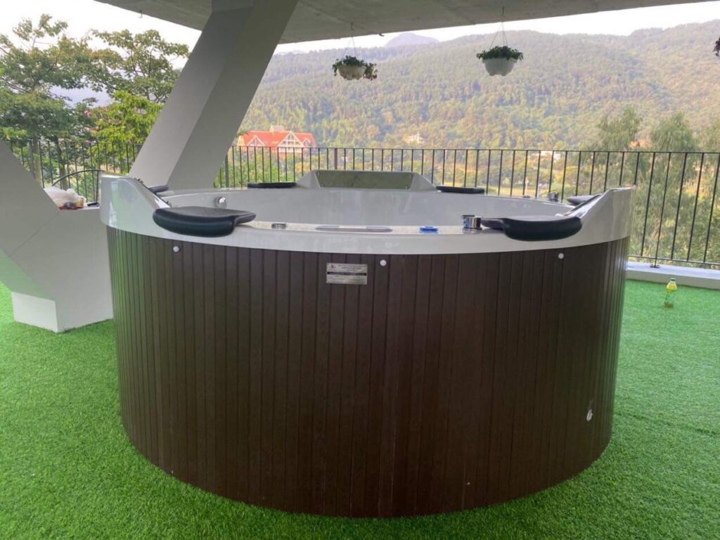 ? Bể sục Jacuzzi, hãy tưởng tượng bạn nằm trong bể sục cực chill vừa uống rượu vang vừa ngắm khung cảnh thiên nhiên tuyệt diệu.