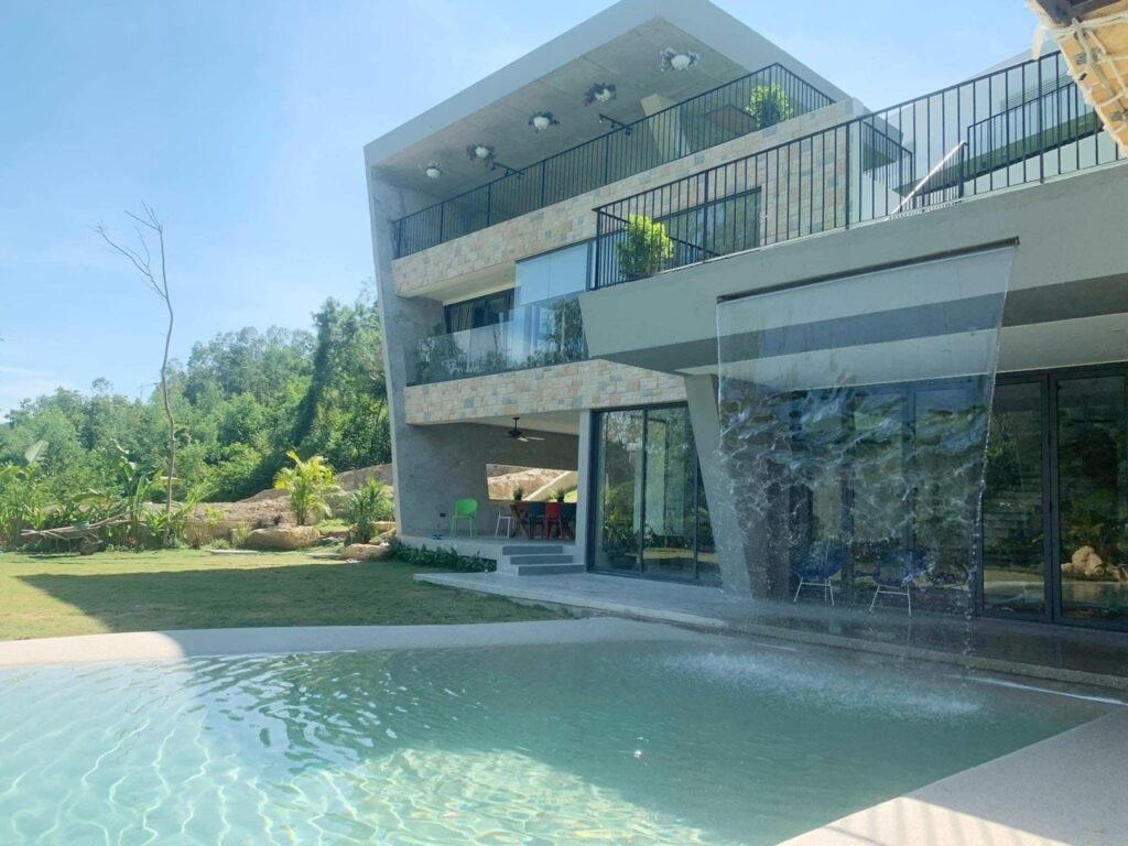 Villa Tam Đảo 6 phòng ngủ có gì đặc biệt? Bể bơi cát điện phân muối có vị mặn hoàn toàn: Bể bơi cát điện phân muối có vị mặn hoàn toàn tự tự nhiên công nghệ độc quyền Tây Ban Nha. Bể được làm hoàn toàn bằng cát tự nhiên cho bạn cảm giác như đang bơi trên biển xanh cát trắng.