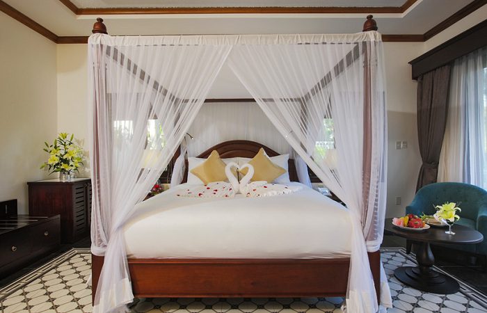 – Luxury Bungalow: diện tích:62m2, giường ngủ Double King size, có ban công rộng rãi hướng ra vườn và biển.
