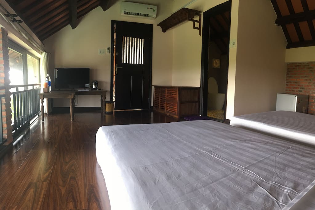 Tất cả các phòng đều có phòng tắm riêng, nhìn ra sông, điều hòa không khí và wifi.