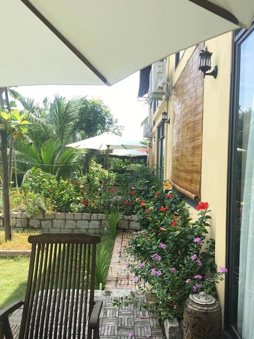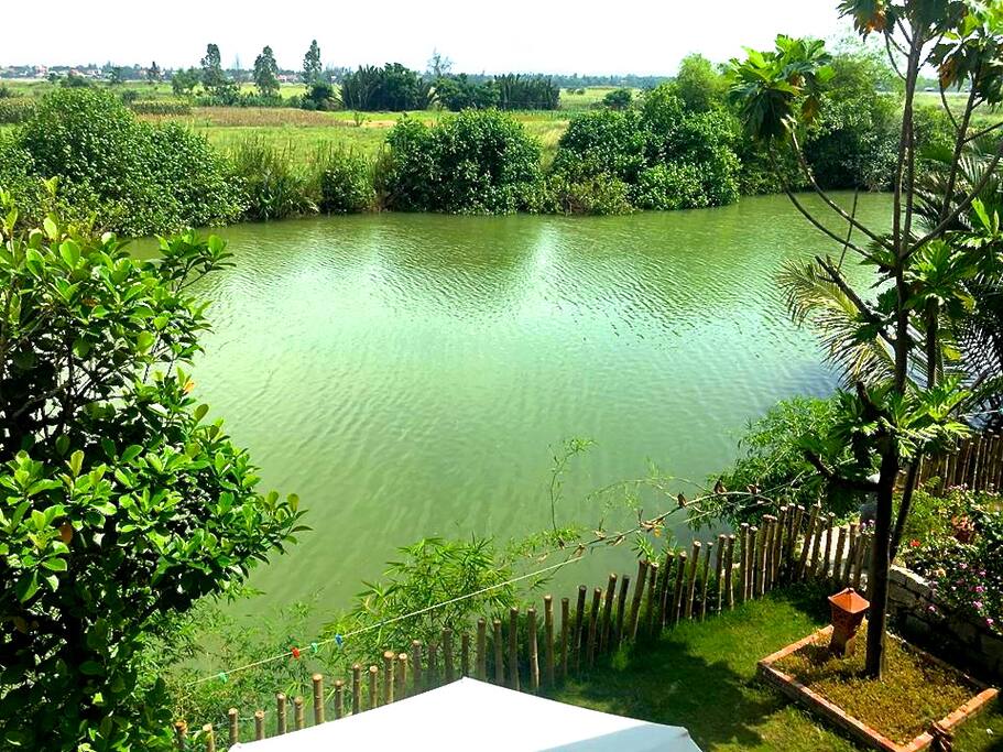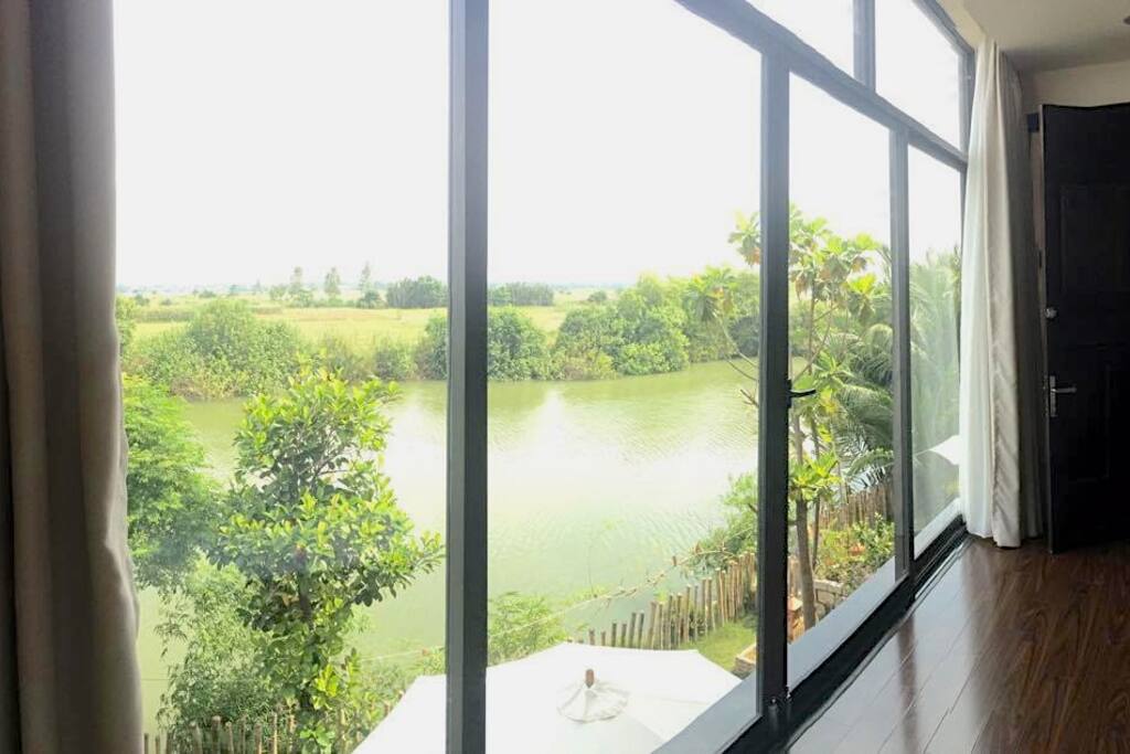 Nhà đẹp mới xây với 3 phòng nhìn ra sông nước rộng rãi và một khu vườn riêng nằm trên bờ sông Thu Bồn chảy qua An.