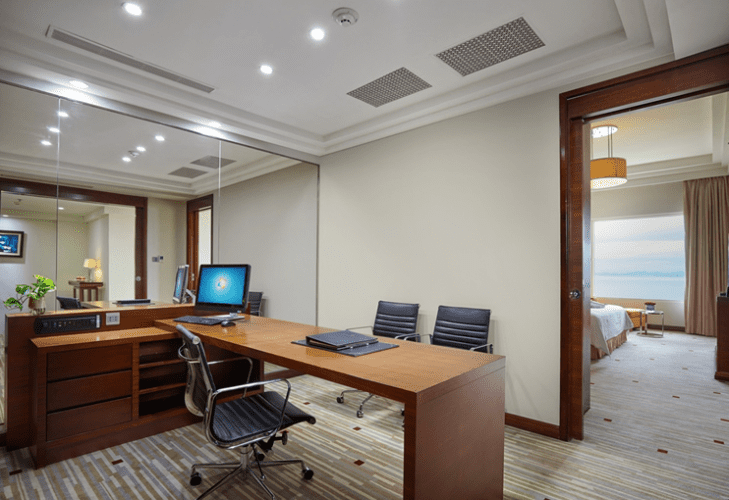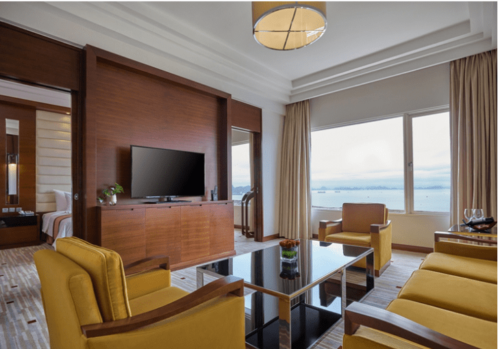 Với tầm nhìn ra vịnh Hạ Long, Suite của chúng tôi có khu vực giường ngủ, đọc sách và phòng khách riêng biệt và cảm giác thoải mái như ở nhà. Khu vực phòng khách được trang bị tốt với giường sofa thoải mái và ghế bành. Phòng đọc có bàn làm việc hình chữ L và bàn làm việc thuận tiện. Tận hưởng và thư giãn với TV màn hình LCD 56 inch, tiện nghi pha trà / cà phê và minibar.