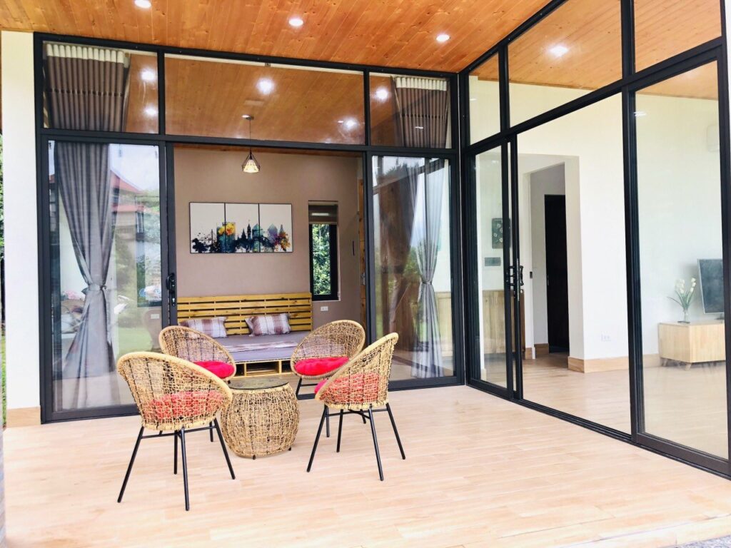 - Khoảng ban công sinh hoạt chung có bàn ghế ngồi ngắm