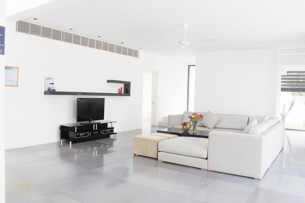 – Phòng khách, phòng sinh hoạt chung được thiết kế theo kiểu không gian mở, cực kỳ rộng rãi và tiện nghi, cửa trượt hoàn toàn bằng kính. Bộ ghế và giường sofa êm ái, TV màn hình phẳng, dàn karaoke, hệ thống truyền hình cáp và wifi phủ sóng toàn biệt thự.
