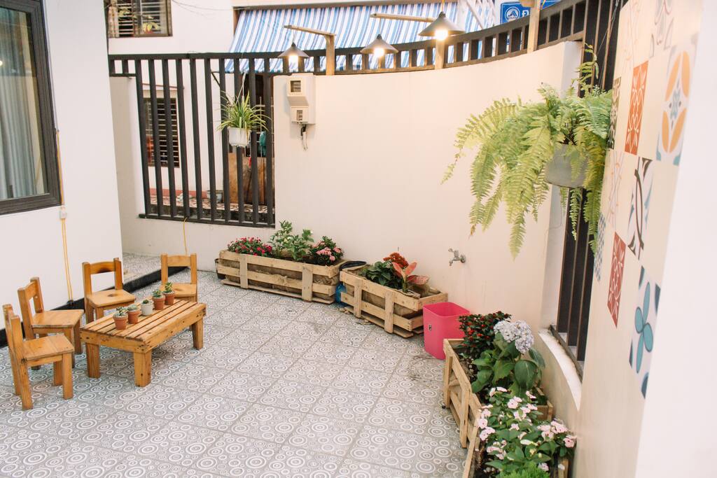 Khu vực chung như không gian giặt ủi, khu vực sân thượng và khu vực tiếp khách ở tầng dưới du khách cũng có thể hoàn toàn sử dụng. Và đặc biệt, với những du khách có xe máy, thoải mái đỗ ở trong sân nếu đi về muộn.