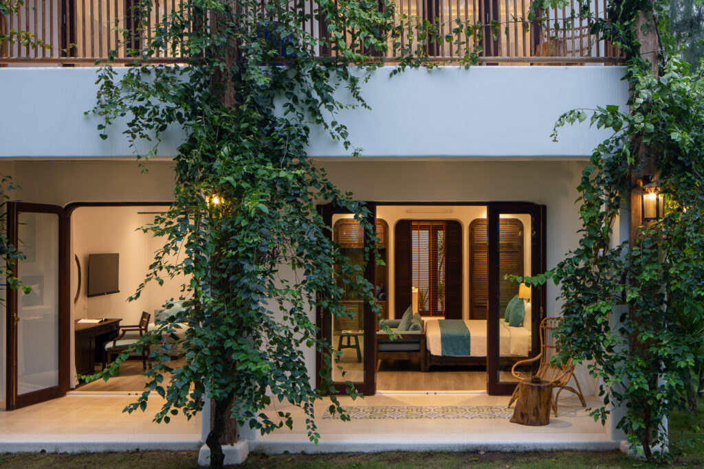 – Premium Twin with Balcony and Garden View: phản ánh nét trang nhã với hai màu trắng – xanh chủ đạo của phong cách Địa Trung Hải kết hợp cùng nội thất gỗ ấm cúng, phòng được thiết kế gồm phòng ngủ 2 giường đơn hướng ra sân vườn, ban công riêng mang đến không gian nghỉ dưỡng thoải mái và gần gũi với thiên nhiên. Giá chỉ từ:
