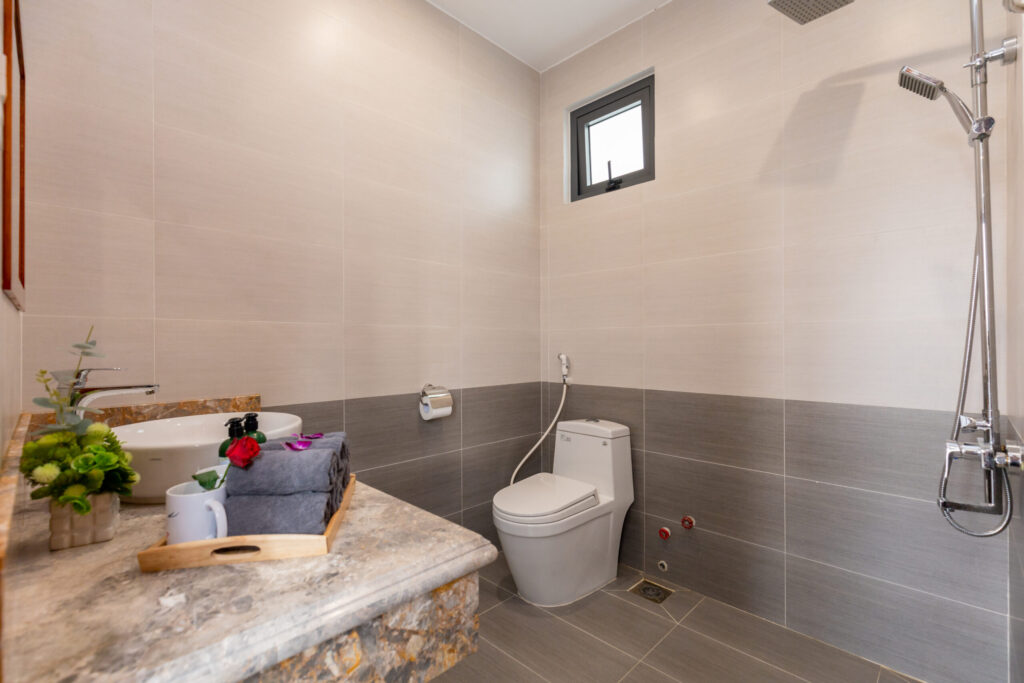 Các phòng tắm đều được trang bị đầy đủ khăn tắm và đồ dùng cá nhân (bàn chải đánh răng, kem đánh răng, lược, dầu gội, sữa tắm).