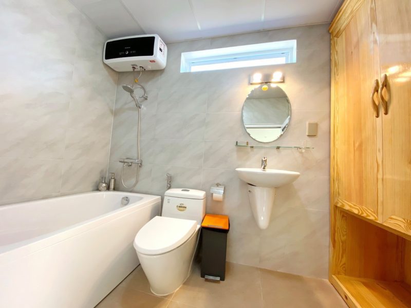 - Tầng 1: có 1 Phòng ngủ – PN 1: có 1 giường 2mx2m2 + thêm 1 nệm.
