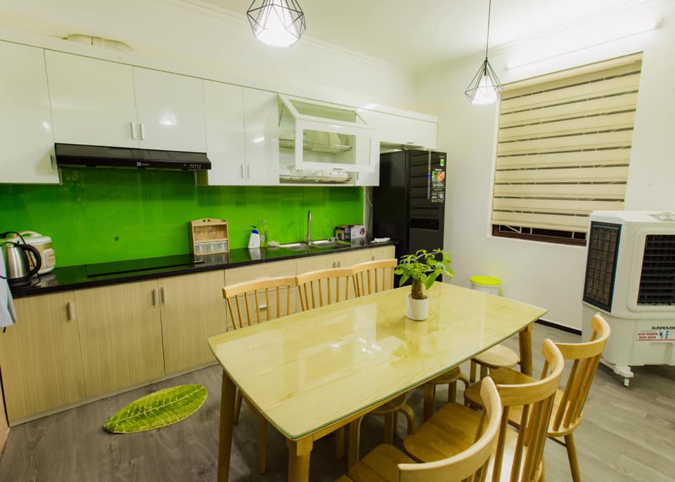 Với phong cách Villa trẻ trung, màu sắc rực rỡ trong đó màu xanh của cây lá là màu chủ đạo được chủ nhà ưu thích và trang trí cho căn nhà. Biệt thự nằm giữa trung tâm sầm uất của khu vực Chợ Vườn Đào, cách Sunworld Hạ Long Park 5 phút đi bộ. Không gian yên tĩnh của Villa là điểm dừng chân nghỉ ngơi lý tưởng cho các đoàn khách để tiếp tục hành trình thăm quan Hạ Long.