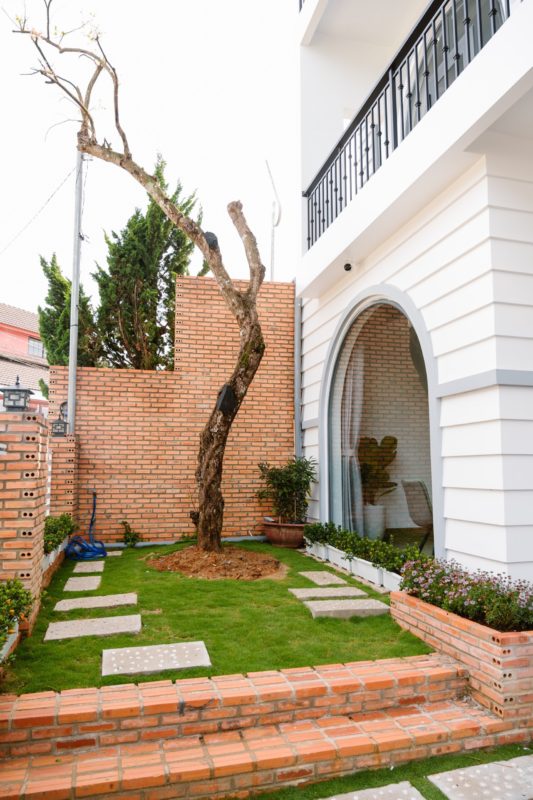 - Sân vườn phía trước rộng rãi chỗ đỗ xe hơi an toàn trong sân.