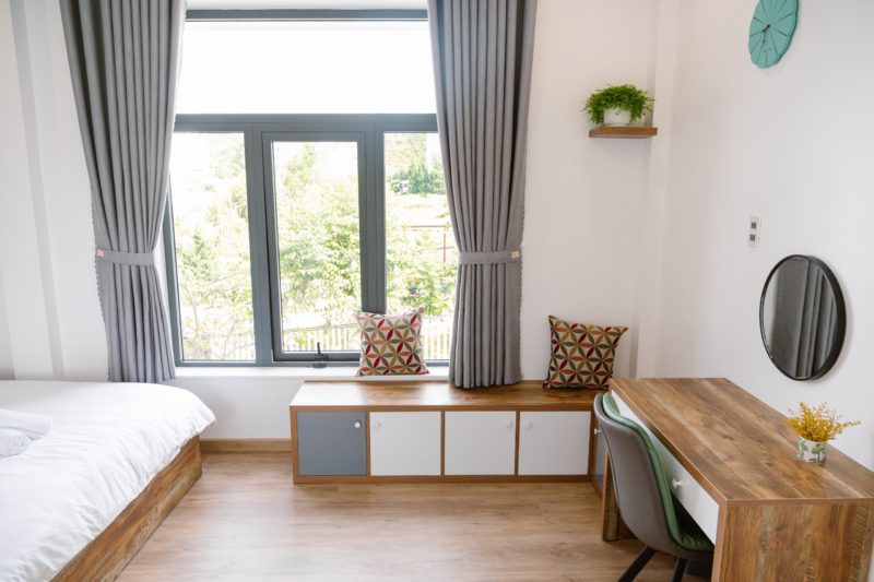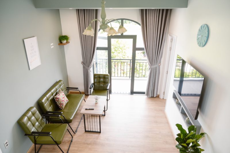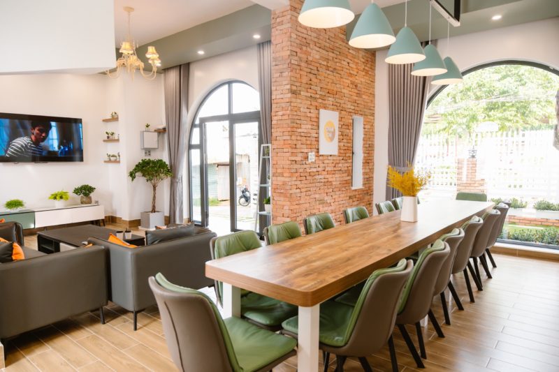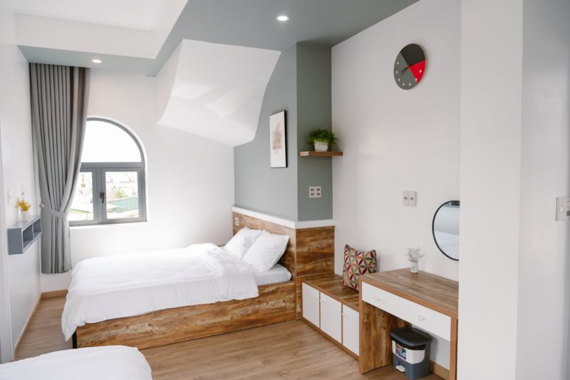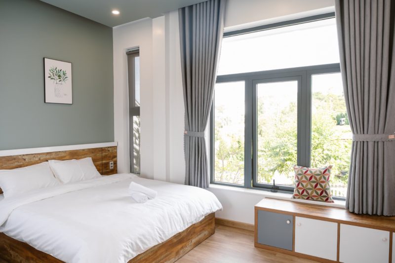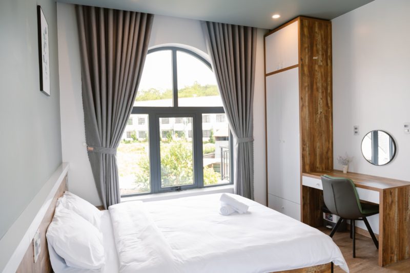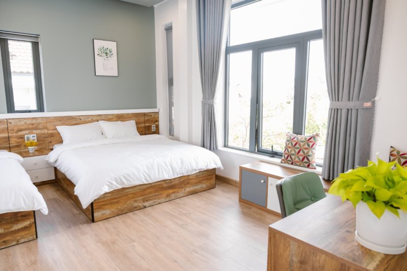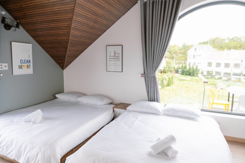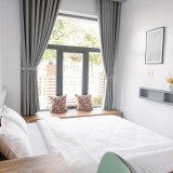 - 6 phòng ngủ bao gồm: 2 phòng đơn 4 phòng đôi. Tất cả các phòng ngủ đều có cửa sổ, view nhìn ra vườn rau xanh mát, dễ chịu.
