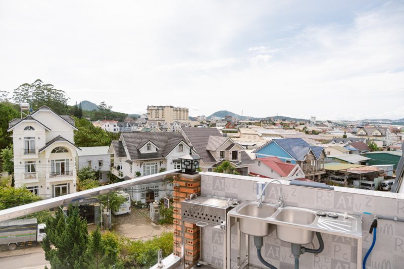 - Ngoài ra tại Villa còn được thiết kế khu vực BBQ riêng dành cho quý khách được sử dụng hoàn toàn miễn phí. Bao gồm bàn ghế, chén bát, lò nướng để quý khách có thể tổ chức tiệc nướng tại ban công dưới ánh đèn ấm áp bên cạnh một chiếc view bao quát cả thành phố Đà Lạt về đêm rất tuyệt vời.