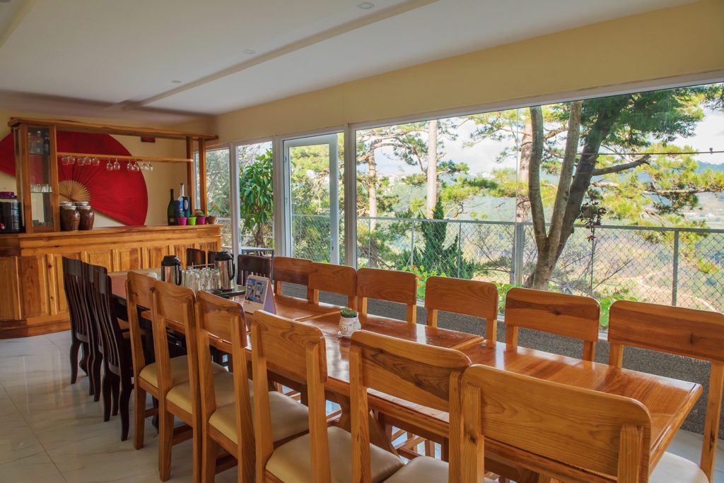 Biệt thự được thiết kế theo lối kiến trúc hiện đại. Bao gồm có 1 phòng khách, 1 bếp đầy đủ trang thiết bị. 1 phòng ăn sức chứa 20 – 25 khách view thung lũng. Ngoài ra còn có 1 ban công rộng rãi view đẹp.