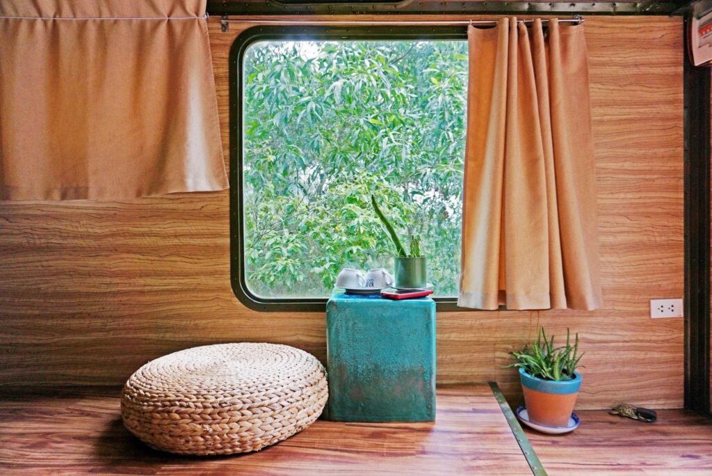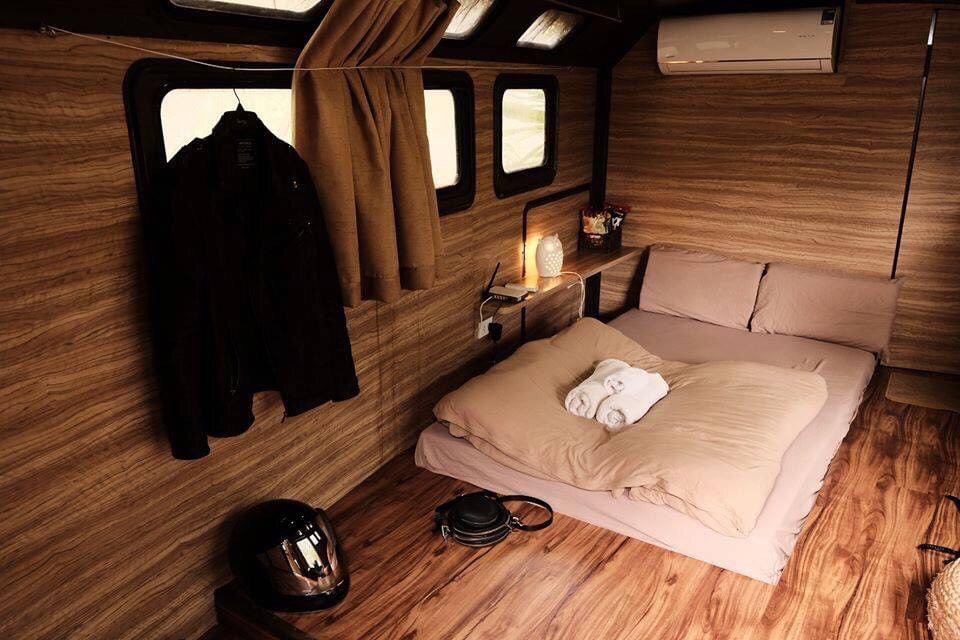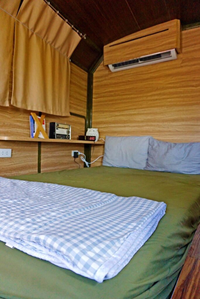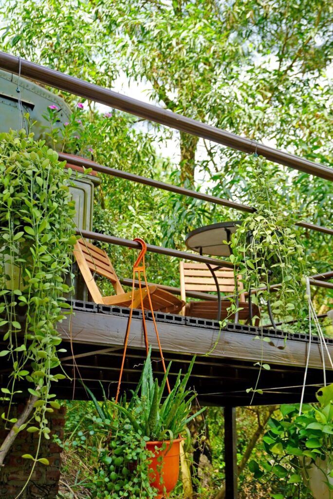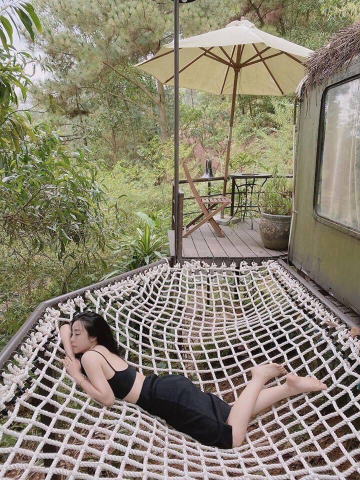 - Thùng sắt 2 là một trong số ít những bungalows đặt tại vị trí cao nhất trong khuôn viên, nơi bạn có thể tha hồ tận hưởng cảm giác sống chênh vênh trên triền núi và sớm chiều có thể ngồi trước hiên nhà phóng mắt ngắm cảnh rừng rộng lớn từ xa.