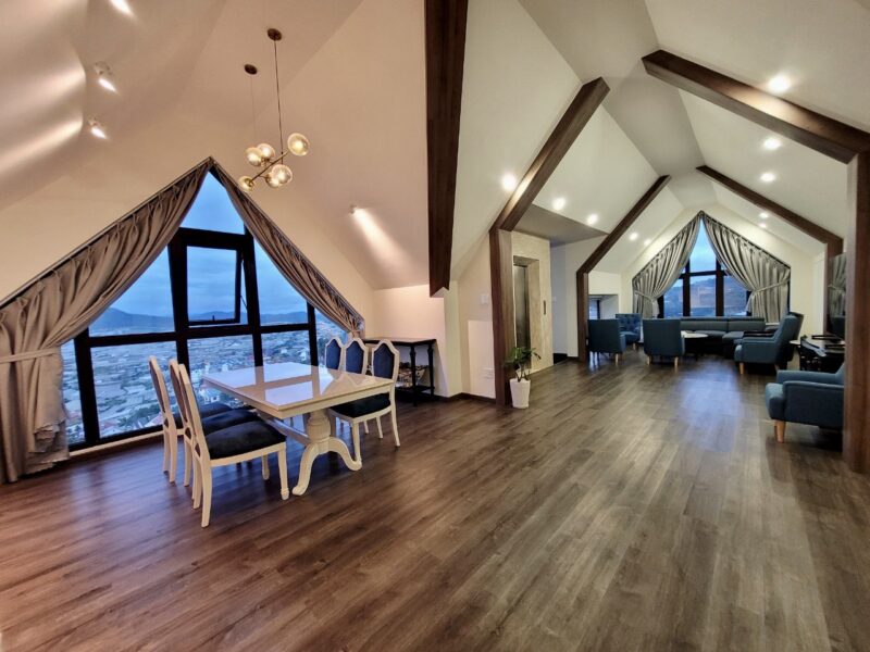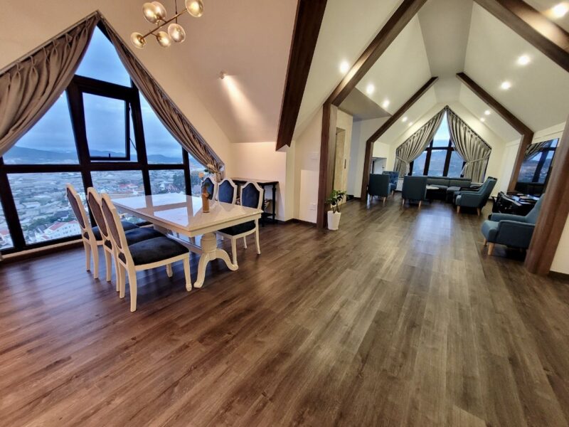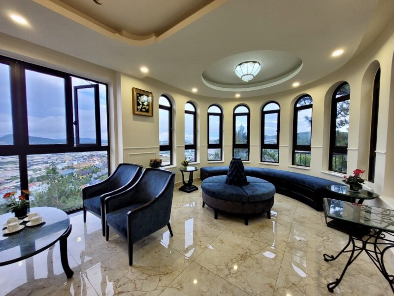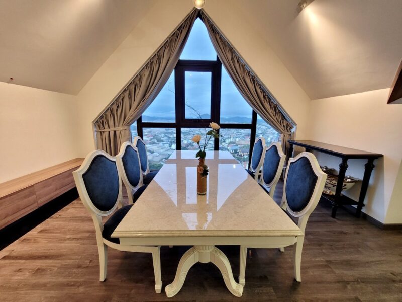 ??Biệt thự sân vườn, với thiết kế 14 phòng gồm 10 phòng đơn, 3 phòng đôi và 1 căn hộ penhouse giành cho nhóm 40 khách, nội thất nhập khẩu từ Đức sẽ cho bạn một trãi nghiệm vô cùng thú vị. Thiết kế trên đồi cao với tất cả các phòng đều có cửa sổ nhìn view đồi thông và thành phố, không gian bếp và BBQ đủ sinh hoạt tập thể.