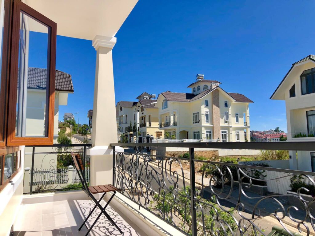Tầng 2: 3 phòng ngủ (1 phòng có toilet trong, ban công đẹp view nhìn xuống thung lũng đồi thông, 2 phòng không có toilet trong), phòng khách rộng và 2 toilet