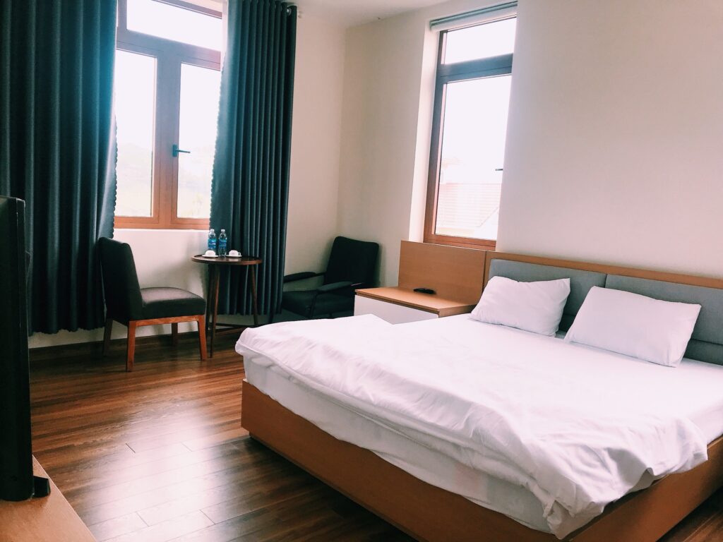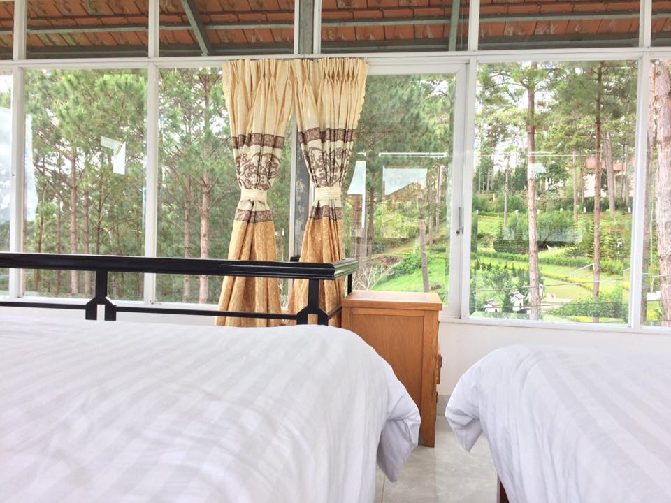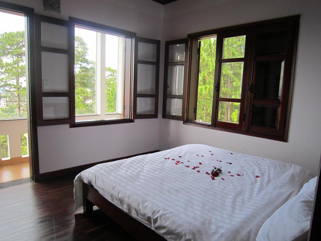 Phòng ngủ lớn với thiết kế có thể ngắm được bờ hồ và cả rừng thông. Không những thế quý khách còn có thể ngắm bình mình và hoàng hôn ngay tại phòng. Vào buổi tối thì không thể bỏ qua màn ngắm sao ngay tại giường nữa nhé.