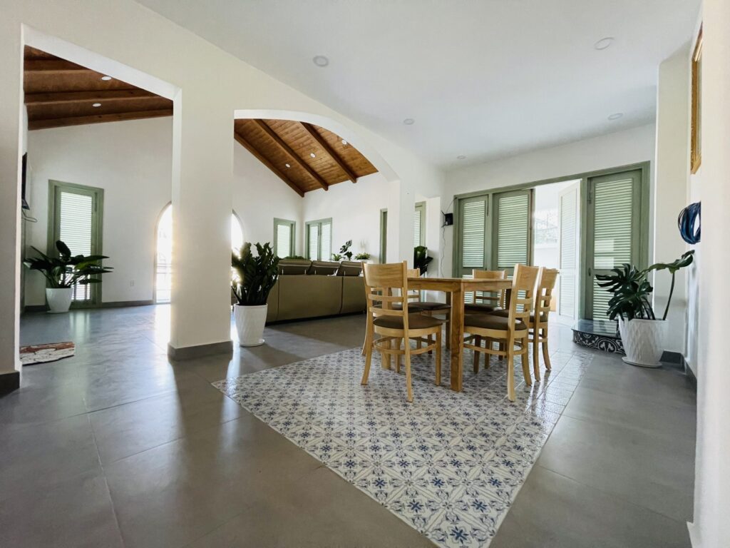 - Phòng khách, bếp, sang trọng đầy đủ tiện nghi, khoảng sân rộng tươi mát tạo cảm thư giãn cho du khách và tổ chức tiệc BBQ thoải mái.