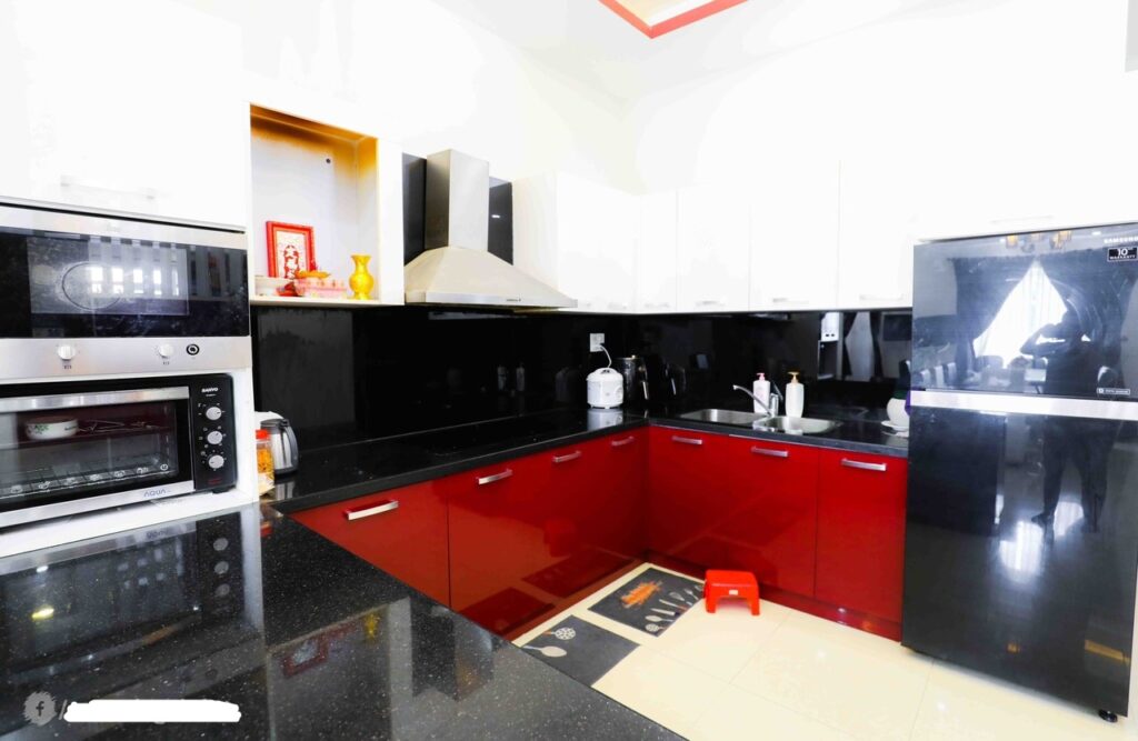 Tiện ích: 1 phòng khách, 1 bếp lớn, 1 sảnh tiệc BBQ, 2 lò nướng lớn, nồi cơm điện, lò vi sóng đầy đủ, sân nội khu lớn với cổng an ninh chặt– Bàn giao chi tiết, giao chìa khoá nguyên căn riêng biệt