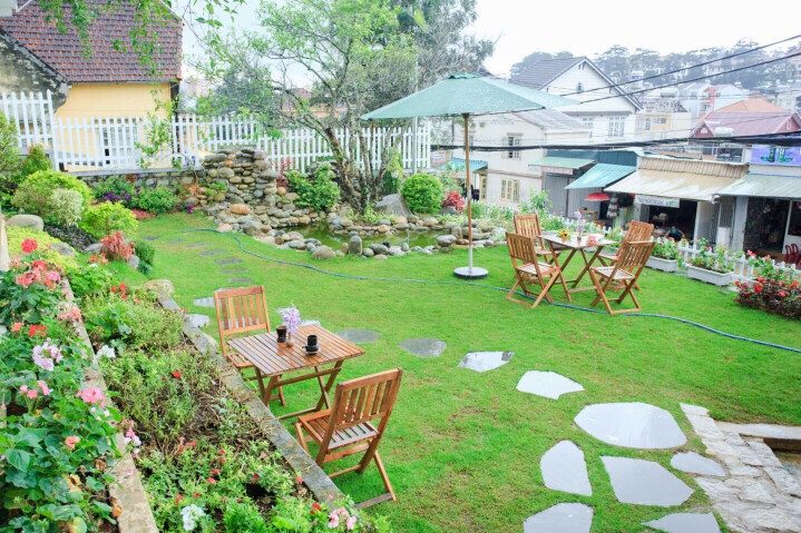 Không gian yên tĩnh, hoa và cây cảnh được trồng khắp khuôn viên Villa.