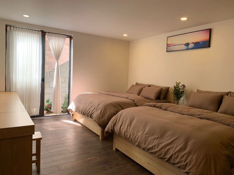 tầng trệt – sảnh villa : 1 phòng đôi 2 giường và 2 phòng đơn 1 giường