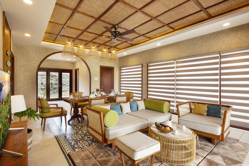 Phòng nghỉ tại resort này là các biệt thự 1 tầng rất rộng. Các biệt thự được xây cách nhau khá xa nên vẫn giữ được không gian riêng tư. Phong cách kiến trúc đương đại hoà trộn với nét cổ truyền của phương Đông tạo ra không gian thân thiện cho các gia đình người Việt.