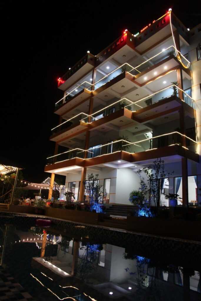Nhà 4 tầng, 7 phòng ngủ khép kín , có điều hòa , nóng lạnh, quạt , tivi, mỗi phòng rộng khoảng 40m,..có thêm khoảng 10 đệm phụ