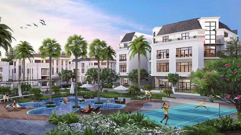 - Biệt thự song lập có tất cả 56 căn, chiều cao 3 tầng, diện tích từ 209.2 – 361.85 m2, nằm tại các lô đất còn lại trong 4 dãy B7, B8, B9, B10, giá bán từ 22 – 40 tỷ.