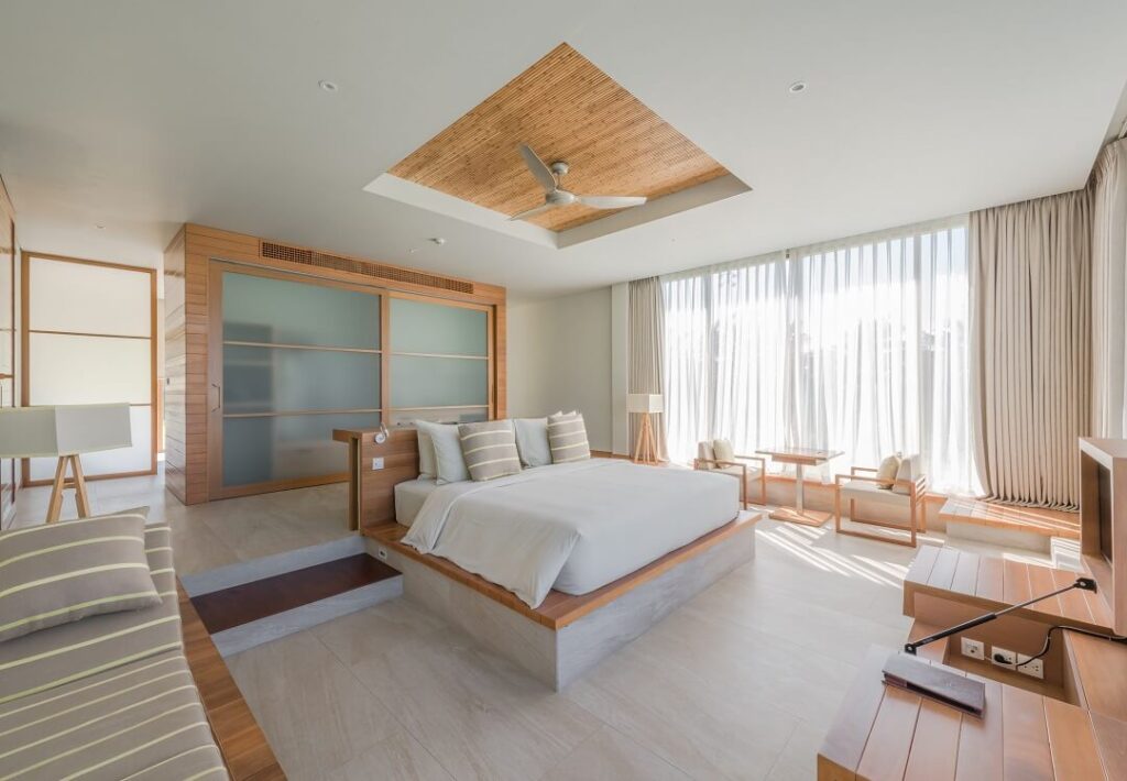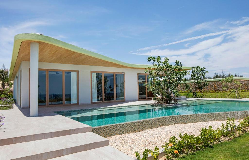 - Villa 3 phòng ngủ: Bao gồm 10 căn hướng biển, 3 phòng ngủ riêng biệt, tiêu chuẩn 6 khách/căn, 2 phòng giường đôi và 1 phòng 2 giường đơn, 2 phòng tắm, bể bơi riêng.
