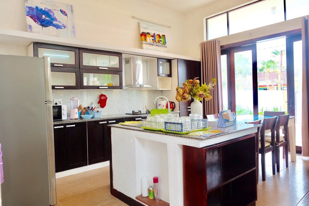 - Mỗi villa có phòng khách, bếp nấu ăn riêng.