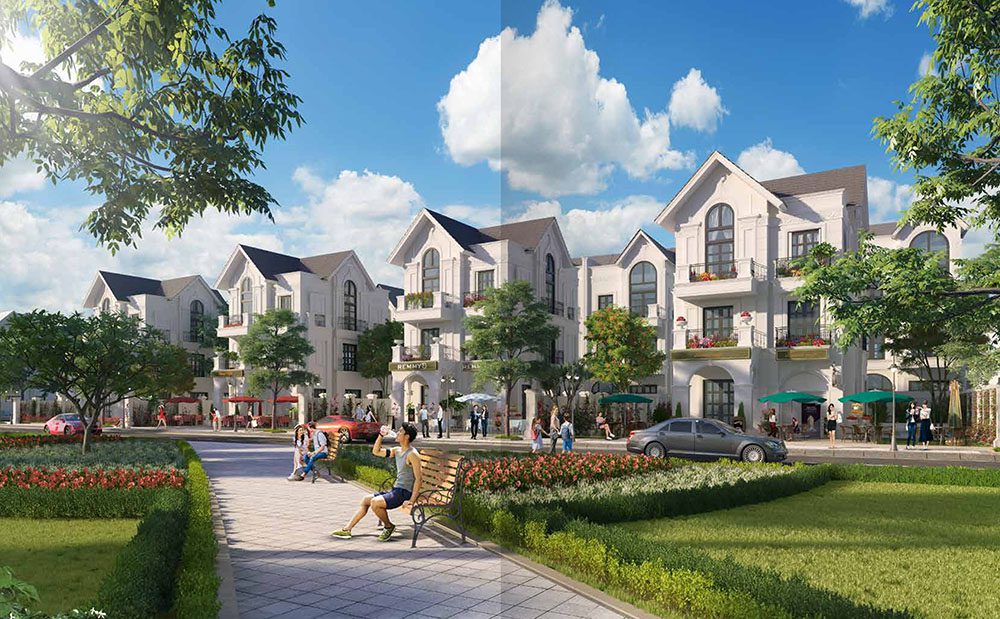 - Nhà phố shophouse: diện tích 67,2 – 102m2; xây dựng 4 tầng nổi và 1 tum.