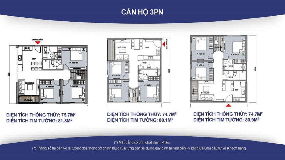 + Căn Hộ 3 PN: Diện tích: 74 – 76 m2