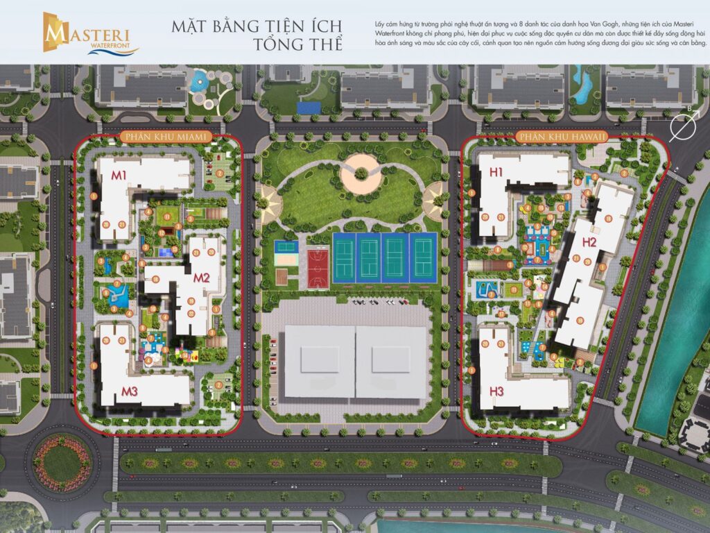 Masteri Waterfront Ocean Park được phát triển với 6 tòa căn hộ M1, M2, M3, H1, H2, H3, trong đó: