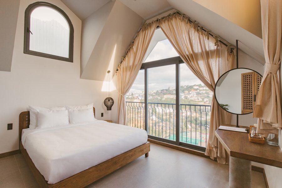 - 4 phòng giường 1m8, 1 phòng 2 giường 1m4, 3 phòng giường 1m6