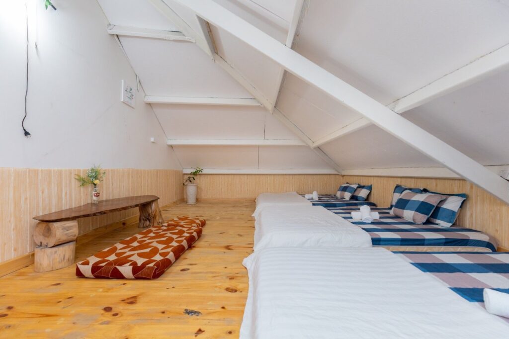 - 7 phòng ngủ (2 đôi, 3 đơn, 2 phòng tập thể)