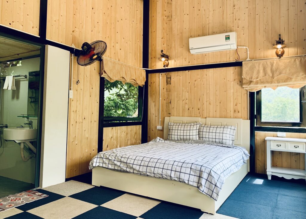– 5 phòng ngủ khép kín với giường đôi 1,8*2m, điều hoà 2 chiều, Smart ti vi, nhà vệ sinh khép kín.