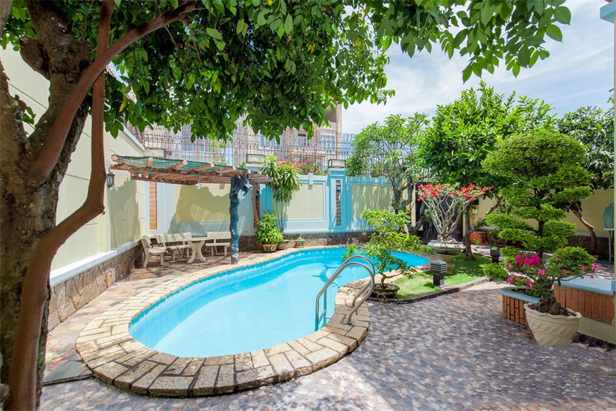 – Hồ bơi sân vườn rộng rãi, thoáng mát, có thể làm tiệc thoải mái.