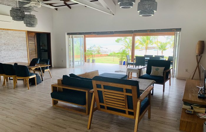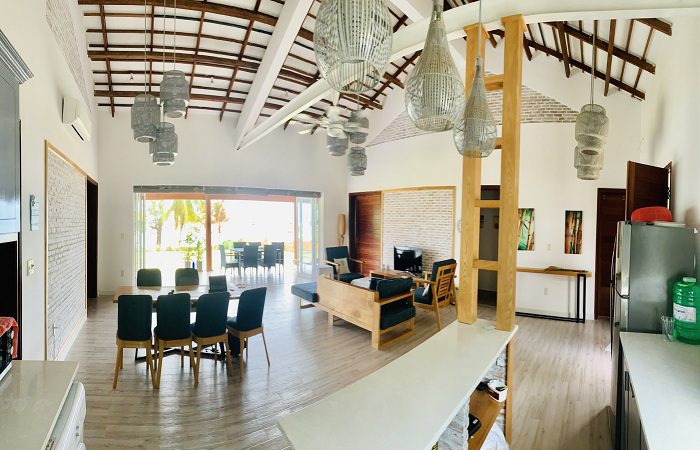 Căn biệt thự có sân vườn rộng, bãi đậu xe và view biển. Diện tích lên tới 230m2 có cấu trúc 1 trệt gồm 1 phòng khách, 1 bếp, 3 phòng ngủ. Trong đó có 2 phòng mỗi phòng 1 giường 1m6x2m cho 2 người, 1 phòng 2 giường 1m2 cho 2 người. Nhà vệ sinh gồm 2 toilet riêng, 1 toilet chung đủ cho 6 người lớn ngủ trên giường.