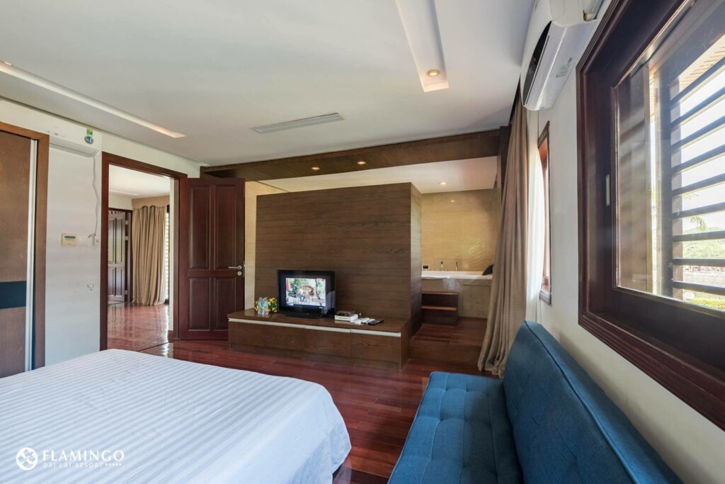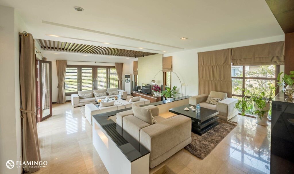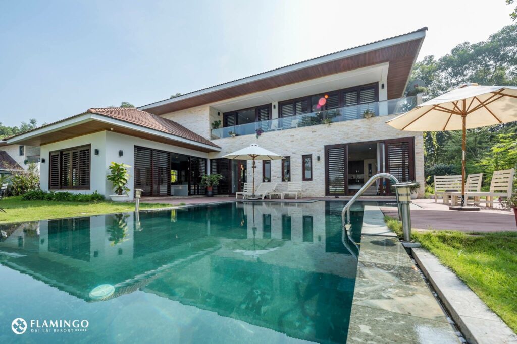 Biệt thự villa 4 phòng ngủ Flamingo Đại Lải Resort có bể bơi đẹp, thiết kế nội thất hiện đại, thích hợp cho gia đình nghỉ dưỡng cuối tuần, lễ, tết, gần Hà Nội.