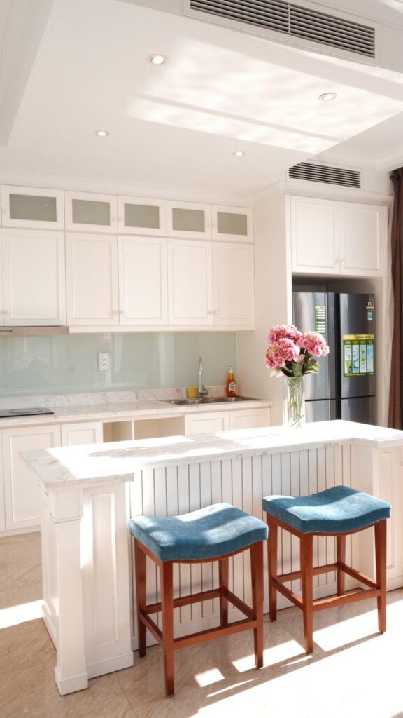 – Trang bị tiện nghi đầy đủ dụng cụ, gia vị nấu nướng, bát đĩa