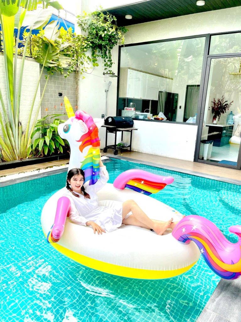 - HỒ BƠI ngoài trời lớn ( dùng muối tự nhiên không hại da em bé )